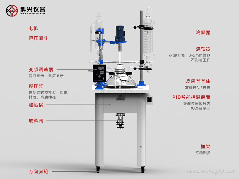 該系列反應(yīng)釜是我公司根據(jù)客戶(hù)實(shí)際需要及規(guī)定標(biāo)準(zhǔn)的新型單層玻璃反應(yīng)釜,其吸收了國(guó)內(nèi)外同類(lèi)產(chǎn)品的優(yōu)點(diǎn),同時(shí)大膽創(chuàng)新,不僅使用方便(可一人方便移動(dòng),操作,清洗,安裝,拆卸),而且結(jié)構(gòu)新穎實(shí)用,外形美觀大方;誠(chéng)為現(xiàn)代化學(xué),精細(xì)化工,生物制藥,新材料合成等試驗(yàn)及生產(chǎn)的理想設(shè)備。該反應(yīng)釜工作原理:玻璃反應(yīng)釜內(nèi)放反應(yīng)物料,同時(shí)可抽真空做攪拌反應(yīng);外部水(油)浴鍋可加水或加熱油進(jìn)行加熱反應(yīng);并能控制反應(yīng)溶液的蒸發(fā)和回流,恒壓加料等功能。(可選配制冷組件,配合制冷源進(jìn)行低溫反應(yīng))