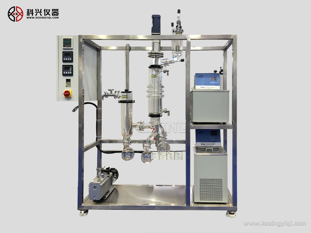 分子蒸餾是一種在高真空下操作的蒸餾方法,這時蒸汽分子的平均自由程大于蒸發(fā)表面與冷凝表面之間的距離,從而可利用料液中各組分蒸發(fā)速率的差異,對液體混合物進(jìn)行分離。分子蒸餾是一種特殊的液-液分離技術(shù),它不同于傳統(tǒng)蒸餾依靠沸點差分離原理,而是靠不同物質(zhì)分子運(yùn)動平均自由程的差別實現(xiàn)分離。
